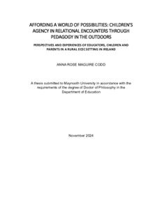 Maguire Codd, Anna Rose (2024) Affording a world of possibilities: Children's agency in relational encounters through pedagogy in the outdoors. PhD thesis, National University of Ireland Maynooth.