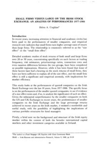 Coghlan, Helen A. (1988) Small Firms versus Large on the Irish Stock Exchange: An Analysis of Performances 1977-1986. Irish Business and Administrative Research, 9 (1): 2. pp. 10-20. ISSN 0332-1118