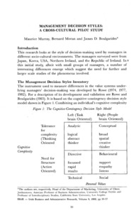 Murray, Maurice, Moran, Bernard and Boulgarides, James D. (1988) Management Decision Styles: A Cross-Cultural Pilot Study. Irish Business and Administrative Research, 9 (1): 4. pp. 30-37. ISSN 0332-1118
