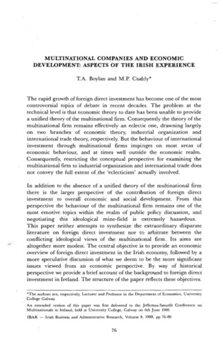 Boylan, T.A. and Cuddy, M.P. (1988) Multinational Companies and Economic Development: Aspects of the Irish Experience. Irish Business and Administrative Research, 9 (1): 9. pp. 76-86. ISSN 0332-1118