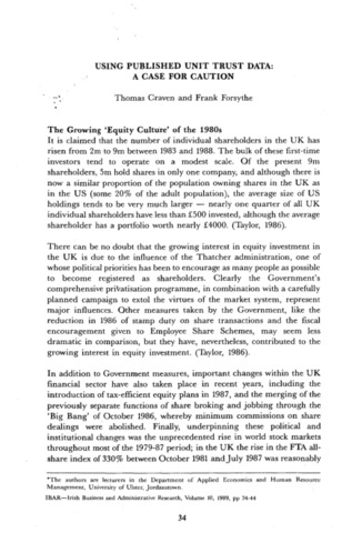 Craven, Thomas and Forsythe, Frank (1989) Using Published Unit Trust Data: A Case for Caution. Irish Business and Administrative Research, 10 (1): 4. pp. 34-44. ISSN 0332-1118