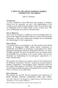 Thompson, John E. (1989) A Note on the Single European Market - Opportunity or Threat? Irish Business and Administrative Research, 10 (1): 10. pp. 97-103. ISSN 0332-1118