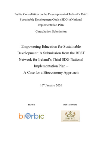 Nic an Bhaird, Maire, Ní Chléirigh, Laoise, Curran, Thomas P., Murray, Jamie, Cogley, Daragh and Anand, Sakshi (2026) Empowering Education for Sustainable Development: A Submission from the BEST Network for Ireland’s Third SDG National Implementation Plan - A Case for a Bioeconomy Approach. Executive Briefing. BiOrbic.