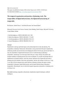 Digitalisation is having a profound impact on the relationship between time and planning. The temporalities of planning's bureaucratic infrastructure is being transformed through its digitalisation, introducing machine and network time and reshaping the relations between past, present and future. In turn, the temporalities of digital infrastructure has led to re-infrastructuring of planning's temporalities, introducing a new timescape wherein the pace, tempo, timings, time patterns and temporal modalities of planning practice have been reconfigured. Yet, despite the profound effect of digitalisation on temporal relations, clock time remains important in the organisation and work of planning given the centrality of time rules and timetables, and this will continue to be the case. Using a case study of the development and control function of planning in Ireland, this paper examines temporalities of planning's digital infrastructures and the digital infrastructuring of planning's temporalities, illustrating the ways in which the temporal organisation and practices of planning work are being re-cast.