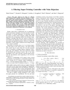 | Keywords: | Filtering Super-Twisting Controller; Noise Rejection; |