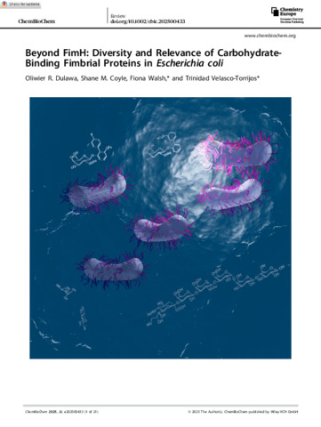 Dulawa, Oliwier R., Coyle, Shane, Walsh, Fiona and Velasco-Torrijos, Trinidad (2025) Beyond FimH: Diversity and Relevance of Carbohydrate-Binding Fimbrial Proteins in Escherichia coli. Chembiochem : a European journal of chemical biology, 26 (17). e202500433. ISSN 1439-7633