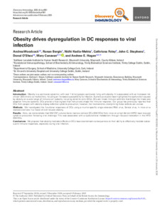 Woodcock, Andrea, Bergin, Ronan, Kedia-Mehta, Nidhi, Foley, Cathriona, Stephens, John C., O’Shea, Donal, Canavan, Mary and Hogan, Andrew E. (2025) Obesity drives dysregulation in DC responses to viral infection. Discovery Immunology, 4 (1). ISSN 2754-2483