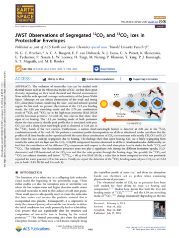 Brunken, N. G. C., Boogert, A. C. A., van Dishoeck, E. F., Evans, N. J., Poteet, C. A., Slavicinska, K., Tychoniec, L., Nazari, P., Looney, L. W., Tyagi, H., Narang, M., Klaassen, P., Yang, Y., Kavanagh, Patrick J., Megeath, S. T. and Ressler, M. E. (2025) JWST Observations of Segregated 12 CO 2 and 13 CO 2 Ices in Protostellar Envelopes. ACS Earth and Space Chemistry, 9 (8). pp. 1992-2003. ISSN 2472-3452