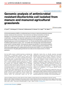 Tyrrell, C., Burgess, C. M., Brennan, F. P., Münzenmaier, D., Drissner, D., Leigh, R. J. and Walsh, Fiona (2025) Genomic analysis of antimicrobial resistant Escherichia coli isolated from manure and manured agricultural grasslands. npj Antimicrobials and Resistance, 3 (1). ISSN 2731-8745