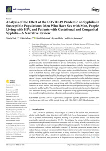 Welc, Natalia, Frącz, Wiktoria, Olejniczak, Rafał, Żaba, Ryszard and Kavanagh, Kevin (2025) Analysis of the Effect of the COVID-19 Pandemic on Syphilis in Susceptible Populations: Men Who Have Sex with Men, People Living with HIV, and Patients with Gestational and Congenital Syphilis—A Narrative Review. Microorganisms, 13 (6). p. 1205. ISSN 2076-2607