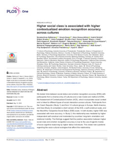| Keywords: | Higher social class; higher contextualized emotion recognition accuracy; cultures; |