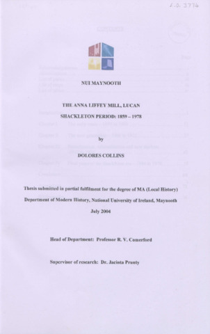 Collins, Dolores (2004) The Anna Liffey Mill, Lucan. Shackleton Period: 1859-1978. Masters thesis, National University of Ireland Maynooth.