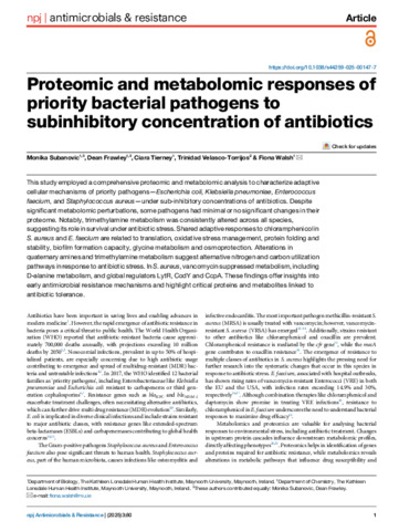 Subanovic, Monika, Frawley, Dean, Tierney, Ciara, Velasco-Torrijos, Trinidad and Walsh, Fiona (2025) Proteomic and metabolomic responses of priority bacterial pathogens to subinhibitory concentration of antibiotics. npj Antimicrobials and Resistance, 3 (1). p. 80. ISSN 2731-8745