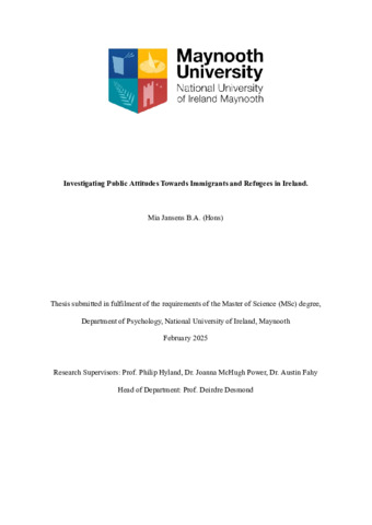Jansens, Mia (2025) Investigating Public Attitudes Towards Immigrants and Refugees in Ireland. Masters thesis, National University of Ireland Maynooth.