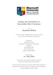 Birkett, Jacqueline (2025) Isotopy and Concordance in Intermediate Ricci Curvatures. PhD thesis, National University of Ireland Maynooth.