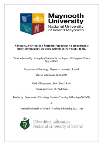 Bordoloi, Akangshya (2025) Advocacy, Activism and Southern Feminism: An ethnographic study of regulatory sex work activism in New Delhi, India. PhD thesis, National University of Ireland Maynooth.