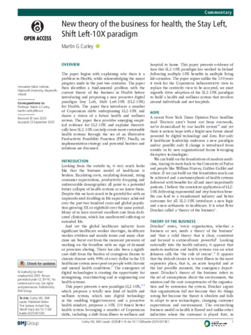 Curley, Martin (2025) New theory of the business for health, the Stay Left, Shift Left-10X paradigm. BMJ Leader. ISSN 2398-631X