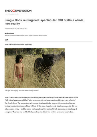 Macdonald, Iain (2016) Jungle Book reimagined: spectacular CGI crafts a whole new reality. The Conversation. pp. 1-5.