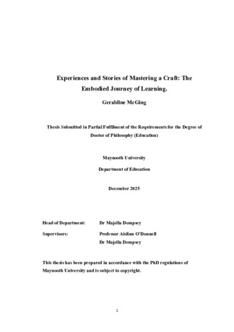 McGing, Geraldine (2025) Experiences and Stories of Mastering a Craft: The Embodied Journey of Learning. PhD thesis, National University of Ireland Maynooth.