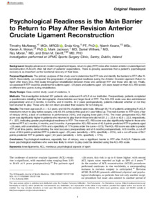 Despite advances in modern surgical techniques, return-to-play (RTP) rates after revision anterior cruciate ligament reconstruction (R-ACLR) often fall short of patients’ expectations. There is growing awareness that a patient’s psychological recovery is as important as the functional recovery of their knee.