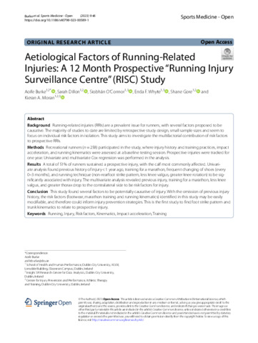 Burke, Aoife, Dillon, Sarah, O’Connor, Siobhán, Whyte, Enda F., Gore, Shane and Moran, Kieran (2023) Aetiological Factors of Running-Related Injuries: A 12 Month Prospective “Running Injury Surveillance Centre” (RISC) Study. Sports Medicine - Open, 9 (1). pp. 1-16. ISSN 2198-9761