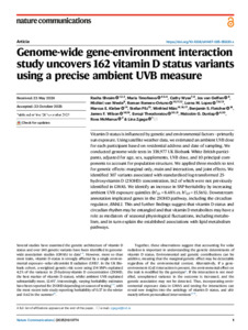 | Keywords: | Genome-wide gene-environment interaction; 162 vitamin D status variants; ambient UVB measure; |