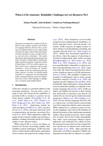 Panahi, Solmaz and Kelleher, John D. (2026) When LLMs Annotate: Reliability Challenges in Low-Resource NLI. In: EACL-2026, March 24-29, 2026, Rabat, Morocco.
