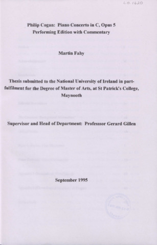 Fahy, Martin (1995) Philip Cogan: Piano Concerto in C, Opus 5 Performing Edition with Commentary. Masters thesis, St. Patrick's College, Maynooth.