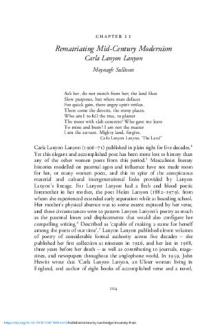 Sullivan, Moynagh (2021) Rematriating Mid-century Modernism: Carla Lanyon Lanyon. In: A History of Irish Women's Poetry. Cambridge University Press, Cambridge, pp. 204-222. ISBN 9781108778596