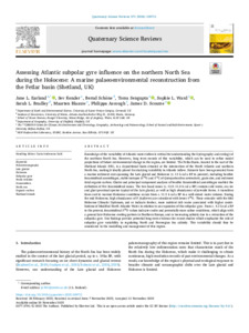 Earland, Jane, Kender, Sev, Schone, Bernd, Sengupta, Torsa, Ward, Sophie, Bradley, Sarah, Blaauw, Maarten, Ascough, Philippa and Scourse, James D. (2026) Assessing Atlantic subpolar gyre influence on the northern North Sea during the Holocene: A marine palaeoenvironmental reconstruction from the Fetlar basin (Shetland, UK). Quaternary Science Reviews, 372 (109711). pp. 1-17. ISSN 0277-3791