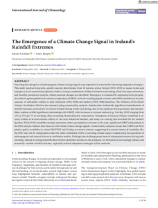 Fordham, Saoirse and Murphy, Conor (2026) The Emergence of a Climate Change Signal in Ireland's Rainfall Extremes. International Journal of Climatology (70346). pp. 1-16. ISSN 0899-8418