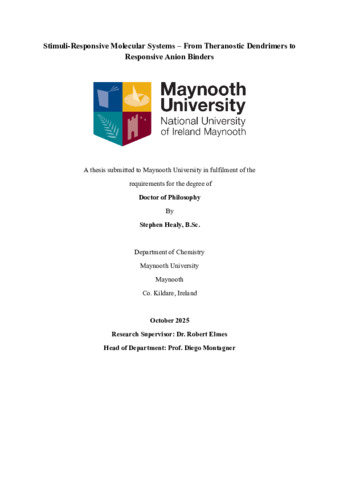 Healy, Stephen (2025) Stimuli-Responsive Molecular Systems – From Theranostic Dendrimers to Responsive Anion Binders. PhD thesis, National University of Ireland Maynooth.