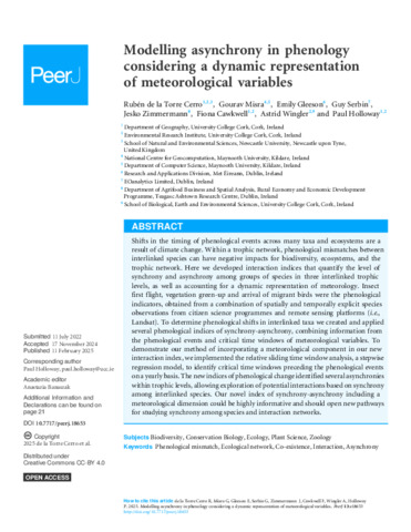 de la Torre Cerro, Rubén, Misra, Gourav, Gleeson, Emily, Serbin, Guy, Zimmermann, Jesko, Cawkwell, Fiona, Wingler, Astrid and Holloway, Paul (2025) Modelling asynchrony in phenology considering a dynamic representation of meteorological variables. PeerJ, 13. e18653. ISSN 2167-8359