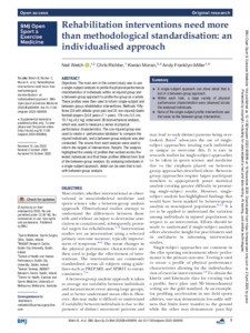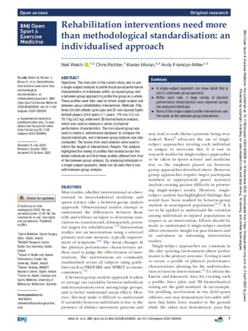 Welch, Neil, Richter, Chris, Moran, Kieran and Franklyn-Miller, Andy (2020) Rehabilitation interventions need more than methodological standardisation: an individualised approach. BMJ Open Sport & Exercise Medicine (000899). pp. 1-7. ISSN 2055-7647