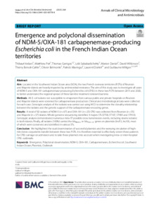 | Keywords: | Emergence; Polyclonal dissemination; NDM-5; OXA-181; Carbapenemases; Escherichia coli; Southwest Indian Ocean; Plasmids; Outbreak; |