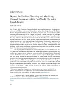 Hassett, Dónal (2025) Beyond the Tirailleur: Narrating and Mobilizing Colonial Experiences of the First World War in the French Empire. The Journal of the Western Society for French History, 51. ISSN 2573-5012