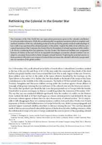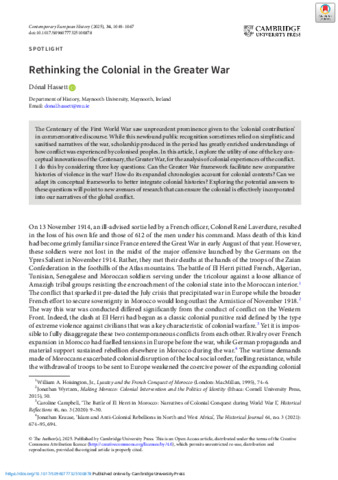 Hassett, Dónal (2025) Rethinking the Colonial in the Greater War. Contemporary European History, 34 (3). pp. 1049-1067. ISSN 0960-7773