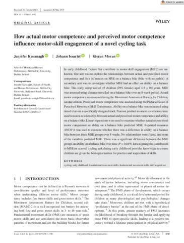 Kavanagh, Jennifer, Issartel, Johann and Moran, Kieran (2019) How actual motor competence and perceived motor competence influence motor‐skill engagement of a novel cycling task. Scandinavian Journal of Medicine & Science in Sports, 29 (10). pp. 1583-1590. ISSN 0905-7188