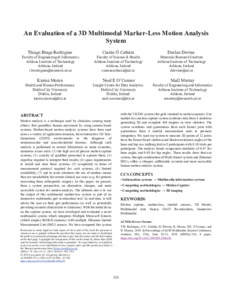 Rodrigues, Thiago Braga, Catháin, Ciarán Ó, Devine, Declan, Moran, Kieran, O'Connor, Noel E and Murray, Niall (2019) An evaluation of a 3D multimodal marker-less motion analysis system. Proceedings of the 10th ACM Multimedia Systems Conference. pp. 213-221.