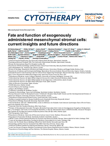 Fate and function of exogenously administered mesenchymal stromal cells: current insights and future directions.