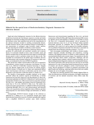 Dempsey, Eithne and Singh, Baljit (2024) Editorial for the special issue of bioelectrochemistry: Diagnostic biosensors for infectious diseases. Bioelectrochemistry, 160. p. 108790. ISSN 1567-5394