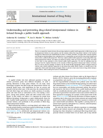 Comiskey, Catherine M., Marder, Ian D. and Corbally, Melissa (2026) Understanding and preventing drug-related interpersonal violence in Ireland through a public health approach. International Journal of Drug Policy, 149. p. 105156. ISSN 0955-3959