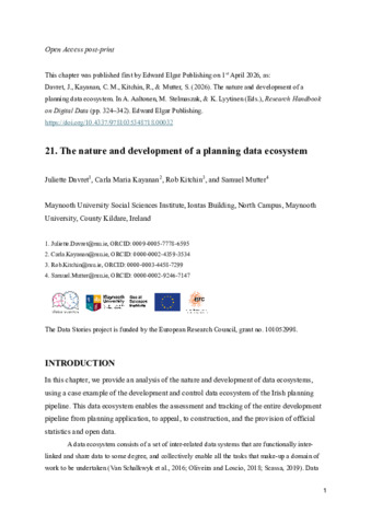 Davret, Juliette, Kayanan, Carla Maria, Kitchin, Rob and Mutter, Samuel (2026) The nature and development of a planning data ecosystem. In: Research Handbook on Digital Data: Interdisciplinary Perspectives. Edward Elgar Publishing, pp. 324-342. ISBN 9781035348718