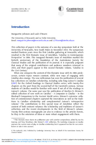 Johnson, Marguerite and O'Hearn, Leah (2022) Introduction. Antichthon, 55 (1). pp. 1-5. ISSN 0066-4774