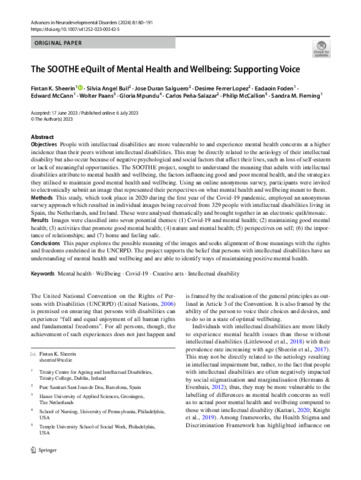 Sheerin, Fintan, Buil, Silvia Angel, Salguero, Jose Duran, Lopez, Desiree Ferrer, Foden, Eadaoin, McCann, Edward, Paans, Wolter, Mpundu, Gloria, Peña-Salazar, Carlos, McCallion, Philip and Fleming, Sandra M. (2024) The SOOTHE eQuilt of Mental Health and Wellbeing: Supporting Voice. Advances in Neurodevelopmental Disorders, 8 (1). pp. 180-191. ISSN 2366-7532
