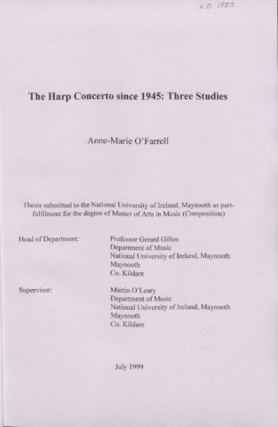 O'Farrell, Anne-Marie (1999) The Harp Concerto since 1945: Three Studies. Masters thesis, National University of Ireland Maynooth.